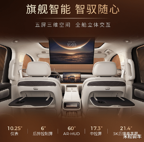 内饰设计已经得到了曝光,采用了环状样中控台设计,匹配了液晶行车电脑以及超大的中控屏幕,中控屏幕尺寸达到了17.3英寸。值得一提的是,我们并没有发现副驾驶娱乐屏幕,这说明厂家其实特意在压低成本,所以我认为会有比较适合的定价。此外,第2排是带有21.4英寸的娱乐大屏的,所以说舒适性配置其实是不错的。从目前曝光的信息来看,这款零跑D99搭载了双8797的芯片,拥有强大的算力,也拥有VLA智能大模型的高阶驾驶辅助系统(可以分析我们的指令并执行,比如往边上靠靠,能够听懂)。除此之外,新车还能够实现端到端的智能驾驶辅助系统,更关键的是,还让小蓝灯上车了。