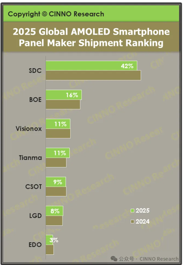 [CNMO科技消息]根据CINNOResearch统计数据,2025年全球市场AMOLED智能手机面板出货量约9.2亿片,同比增长4.7%,再创历史新高。尽管增速较前两年有所放缓,但整体市场仍保持稳健上行态势。