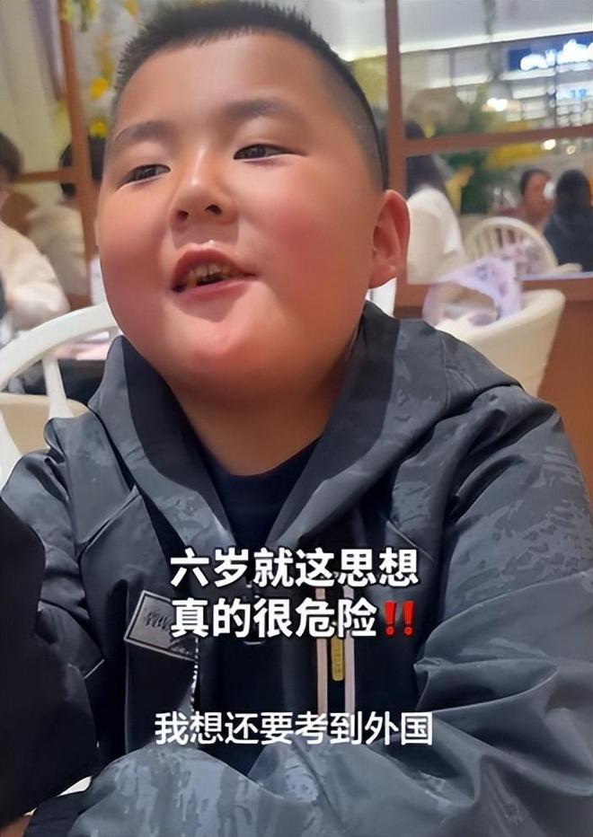 视频一开始,是6岁的小男孩跟母亲一起在商场吃饭,母亲随口问他:以后长大了想做什么,男孩毫不犹豫地回答:我长大之后必须去国外读书,听到这,家长先是愣了一下,随后追问儿子为什么这样想。
